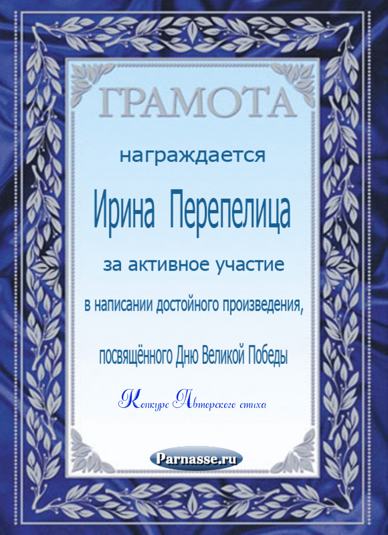 Первое место в праздничном конкурсе "ПОЗДРАВИМ ПАРНАС ВМЕСТЕ!", в номинации "Лучшее стихотворное поздравление Парнасу". Позвольте от всей души выразить Вам благодарность за прекрасные поэтические слова поддержки, самые тёплые пожелания нашему Парнасу и пожелать Вам новых побед на литературном поприще, успехов в жизни и всех Ваших начинаниях! Будьте счастливы, здоровы, пусть удача не покидает Вас ни на минуту и от всей души СПАСИБО! Оставайтесь с нами и мы будем вновь и вновь встречать Дни рождения "Парнаса" в одной дружной, душевной компании! Произведение "ОДА ПАРНАСУ"