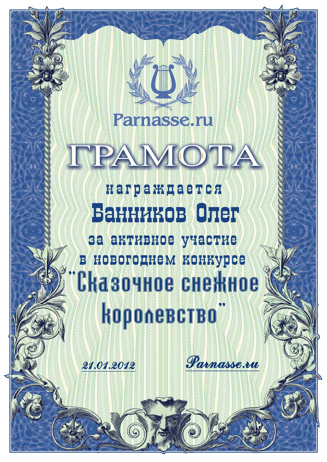 От лица Администрации творческого портала "Парнас" вручаем Вам этот памятный знак с самыми наилучшими пожеланиями! Пусть Вас весь год не покидает творческий запал, удача, а здоровье будет столь же крепким и нерушимым, как и традиция Новогоднего праздника! Счастья, успехов и любви Вам и Вашей семье, друзьям и близким!