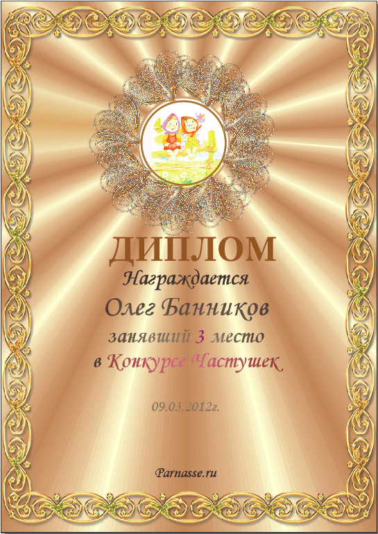 ![]() Медаль за ВТОРОЕ место в конкурсе Частушек!