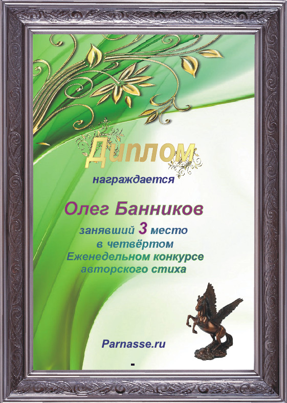![]() Медаль за ТРЕТЬЕ место в четвертом конкурсе "Авторского Стиха"!