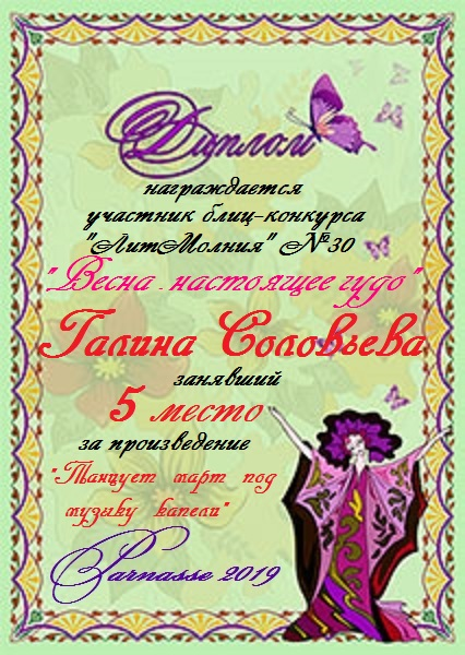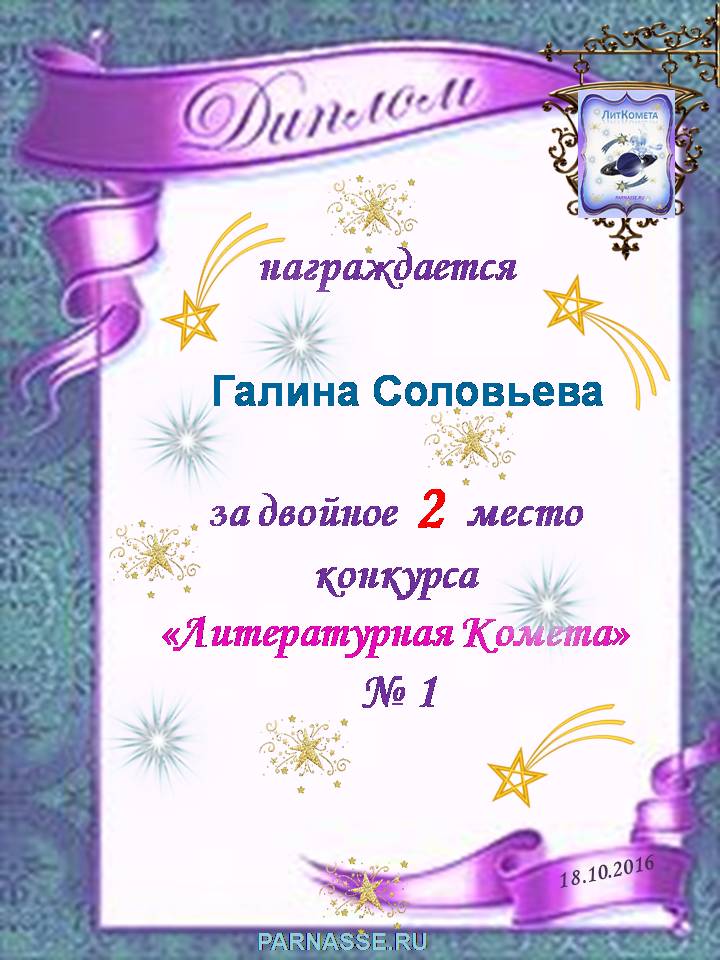 Поздравляю с занятым 2 местом в конкурсе "ЛитКомета-Полёт № 65" в Номинации Поэзия!