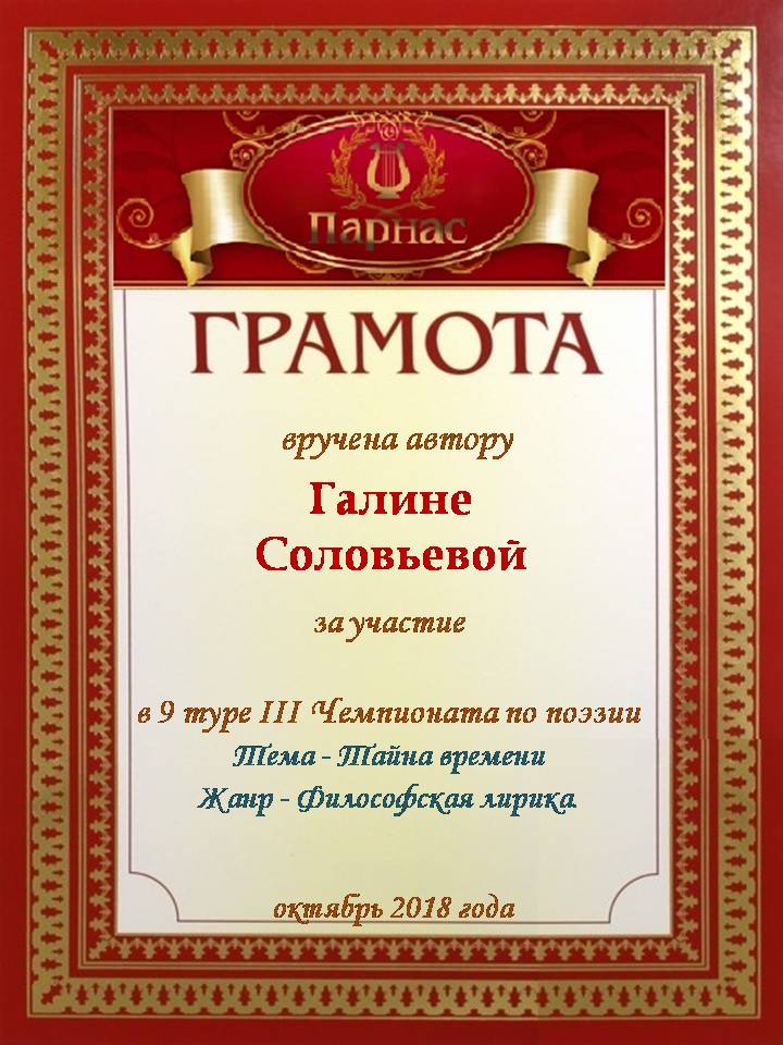 6-ой тур Первого Поэтического Турнира "Вселенная и время бесконечны" (Философские стихи)