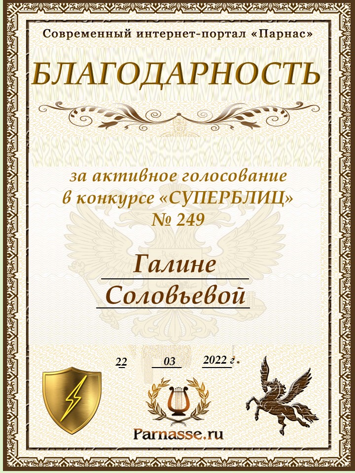 Благодарность за активное голосование в 249 конкурсе СУПЕРБЛИЦАСПАСИБО БОЛЬШОЕ!