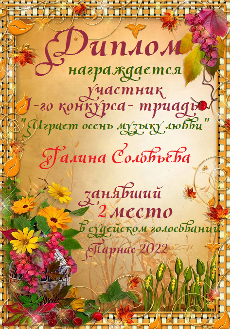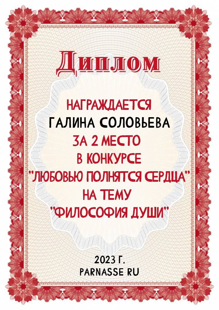 2 место в конкурсе Любовью полнятся сердца на тему "Философия души". Поздравляем!