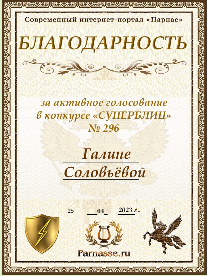 Благодарность за активное голосование в 296 конкурсе СУПЕРБЛИЦАСПАСИБО БОЛЬШОЕ!