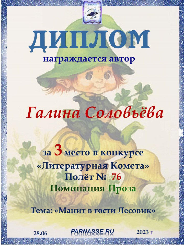 Поздравляю с занятым 3 местом в конкурсе "ЛитКомета - Полёт № 76" - Номинация Проза!