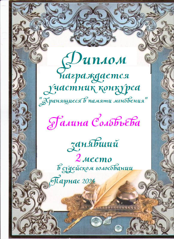 Второе место в судейском голосовании по итогам конкурса "Хранящиеся в памяти мгновения"