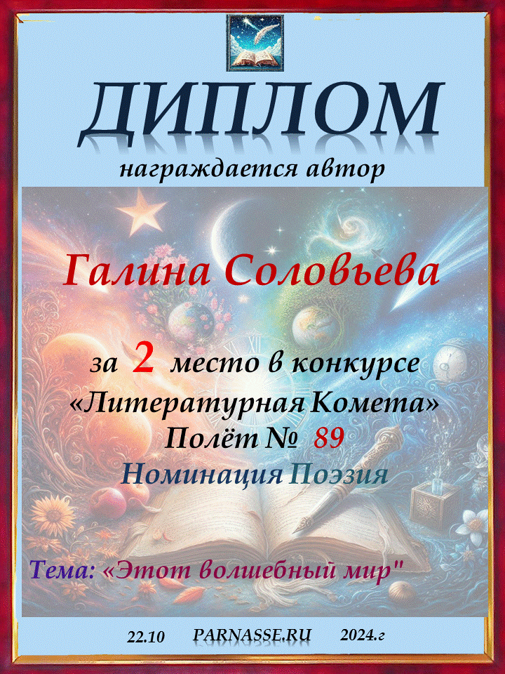 Поздравляю с занятым 2 местом в конкурсе "ЛитКомета - Полёт № 89" - Номинация Поэзия!