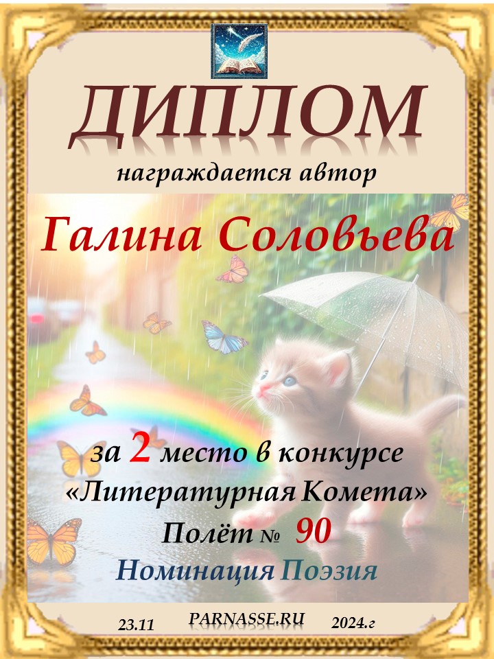 Поздравляю с занятым 2 местом в конкурсе "ЛитКомета - Полёт № 90" - Номинация Поэзия!