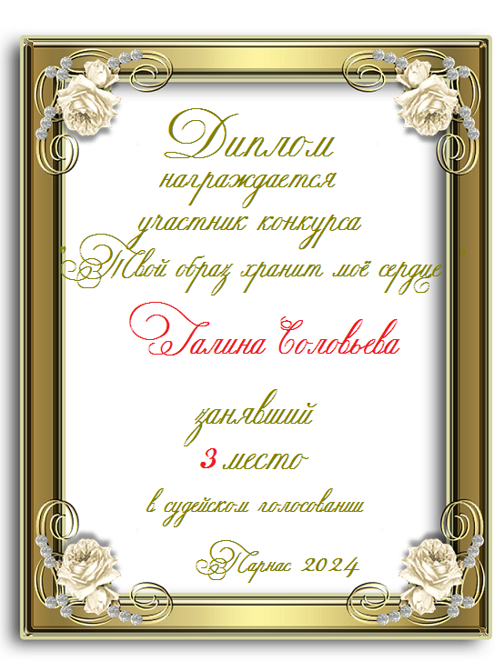 Третье место по итогам конкурса "Твой образ хранит моё сердце"