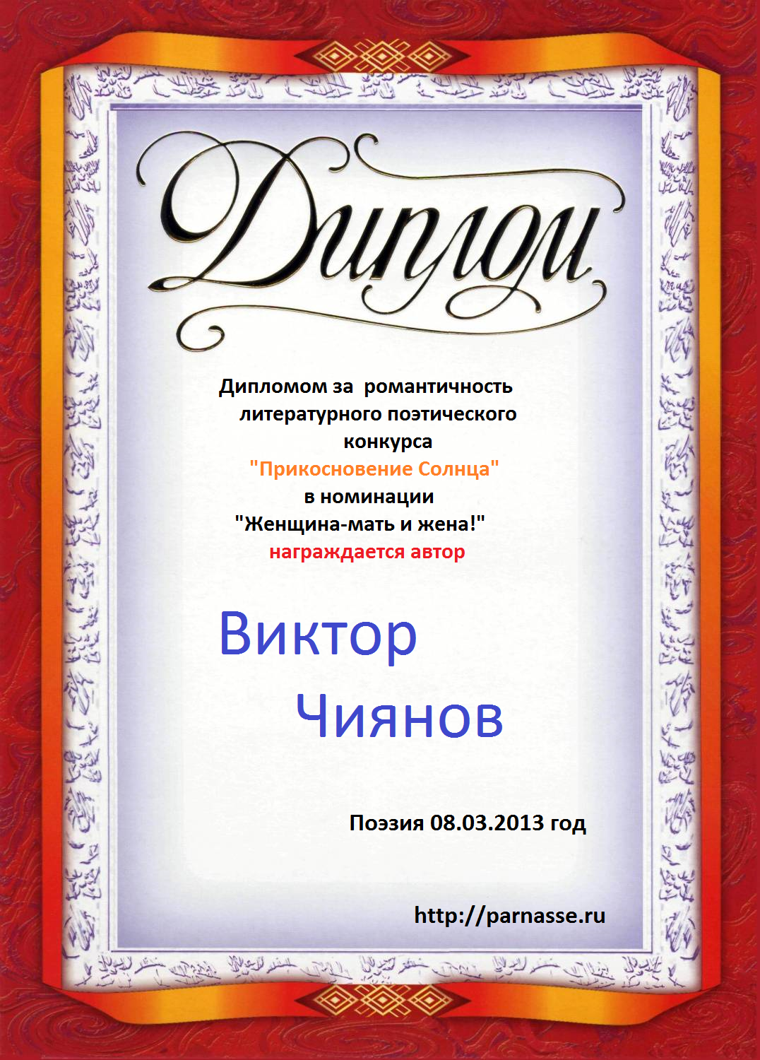 Диплом в конкурсе поэзии "Прикосновение Солнца"