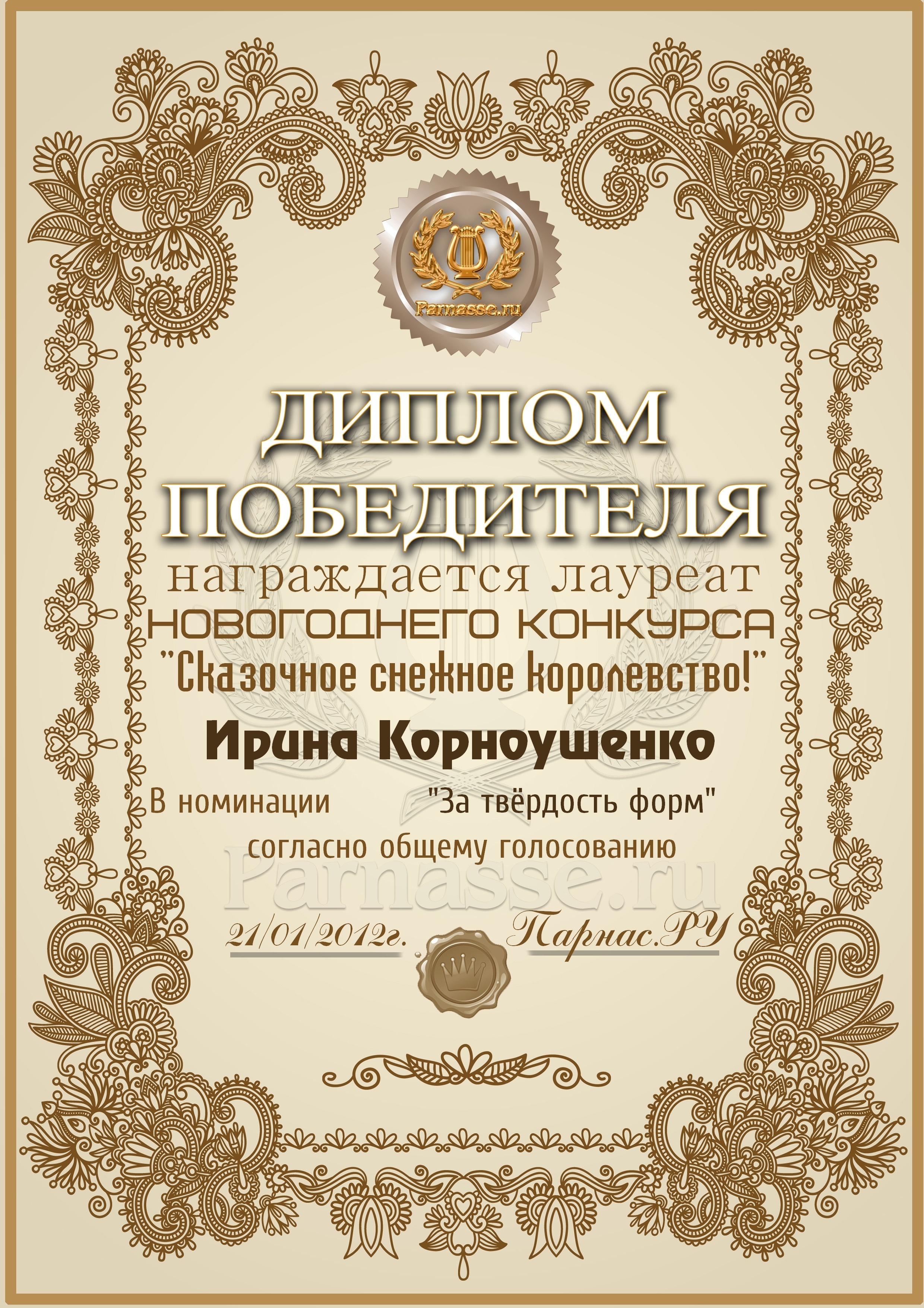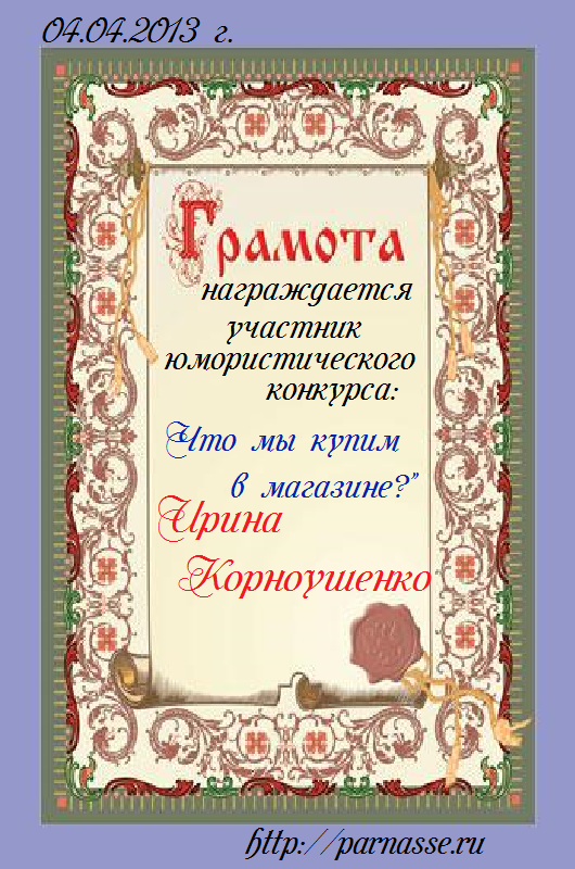 ![]() ![]() ![]() Почётная Грамота «ГОРДОСТЬ ПАРНАСА»