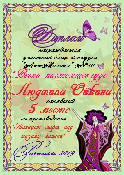 Пятое место в Блиц-конкурсе №30 "Весна - настоящее чудо" за произведение «Танцует март под музыку капели ». Поздравляем!