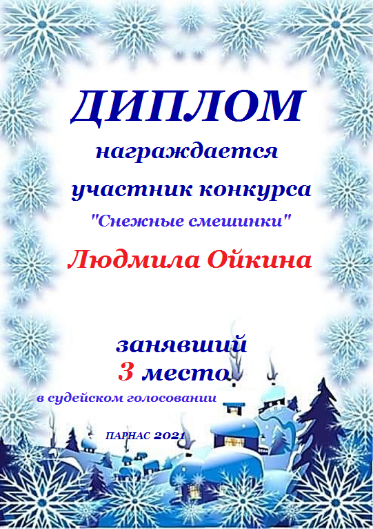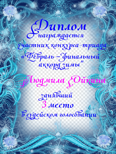 Третье место в судейском голосовании по итогам третьего конкурса - триада "А зима уже не за горами"