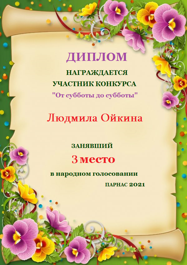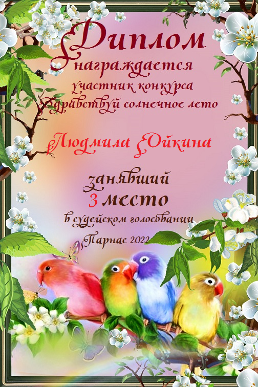 Третье место в судейском голосовании по итогам третьего конкурса - триады " Здравствуй, солнечное лето"