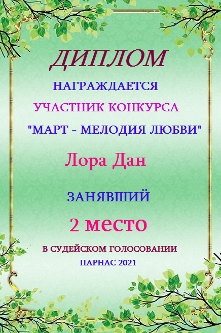 Второе место в судейском голосовании по итогам конкурса "Весны прекрасное мгновение"