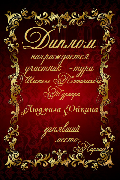 Третье место в судейском голосовании по итогам 3-го тура Шестого поэтического Турнира