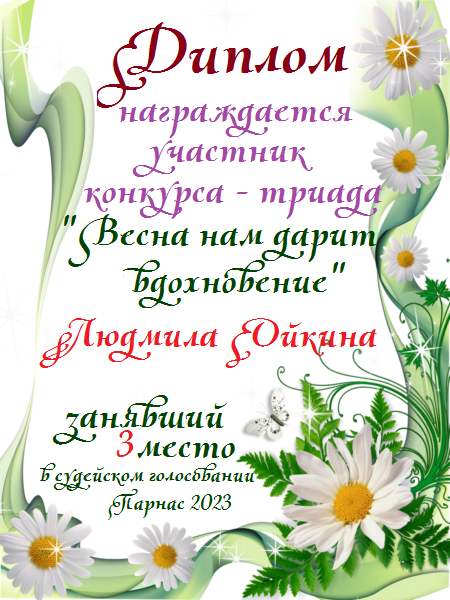 Третье место в судейском голосовании по итогам первого конкурса - триады "Весна нам дарит вдохновение"