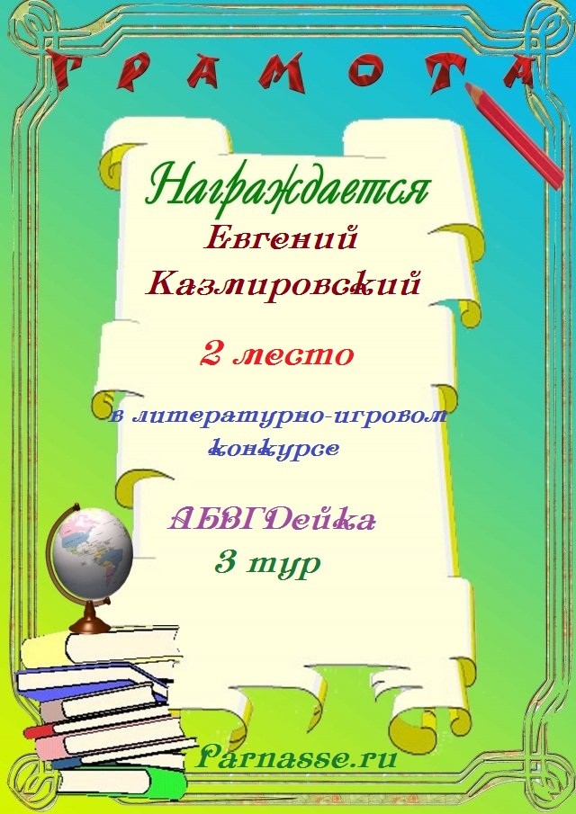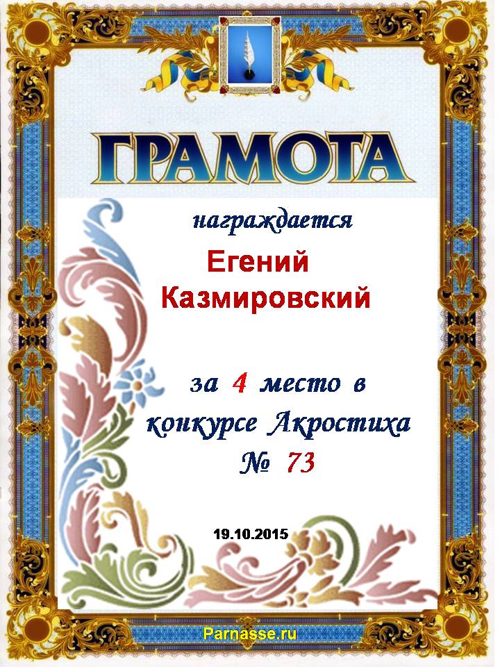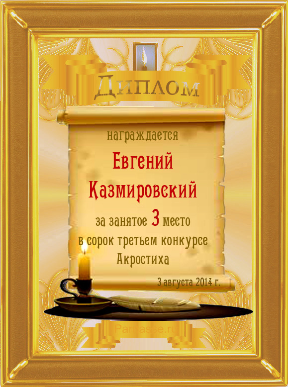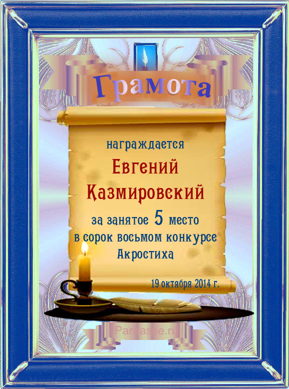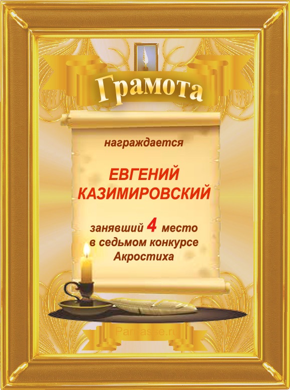 Диплом победителю в конкурсах Акростиха в честь пятилетия конкурса Акростиха!