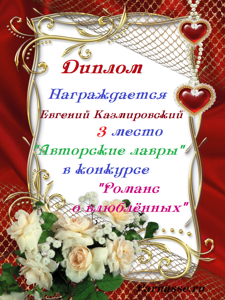 За 3 место в конкурсе"РОМАНС О ВЛЮБЛЁННЫХ"