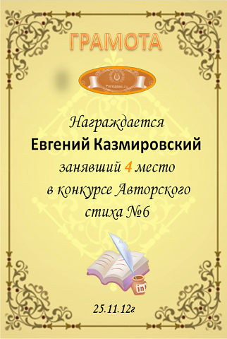Похвальная грамота за 4 место в конкурсе лимериков № 27+ (24.12.2012 г.)