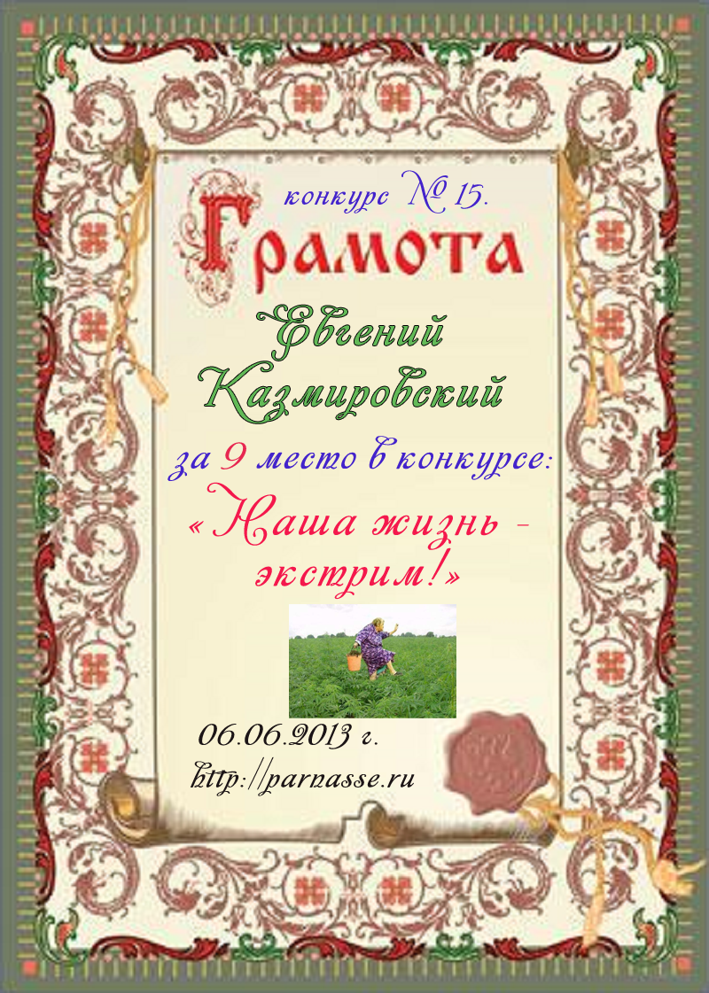 Похвальная грамота за 5 место в конкурсе лимериков № 34+ (8.04.2013 г.)