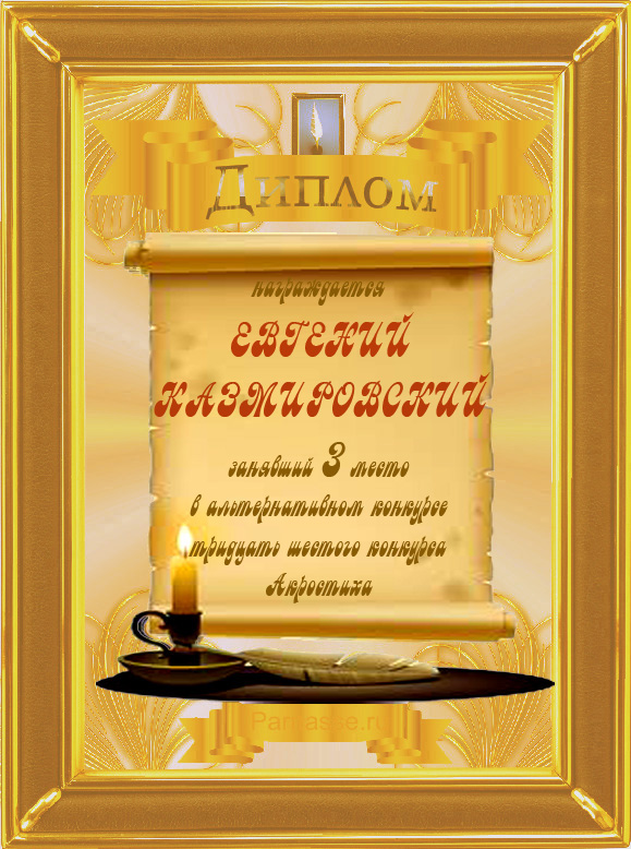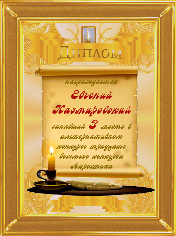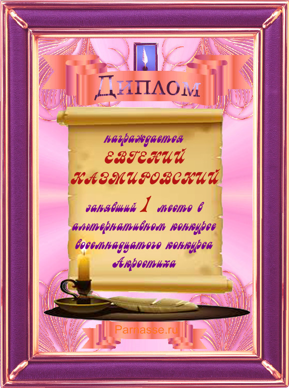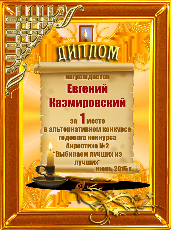 Диплом за 1 место во 2 годовом конкурсе Акростиха по итогам судейского голосования (Альтернатива)! ПОЗДРАВЛЯЮ!