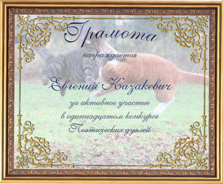 Почётная грамота за активное участие в одиннадцатом конкурсе поэтических дуэлей