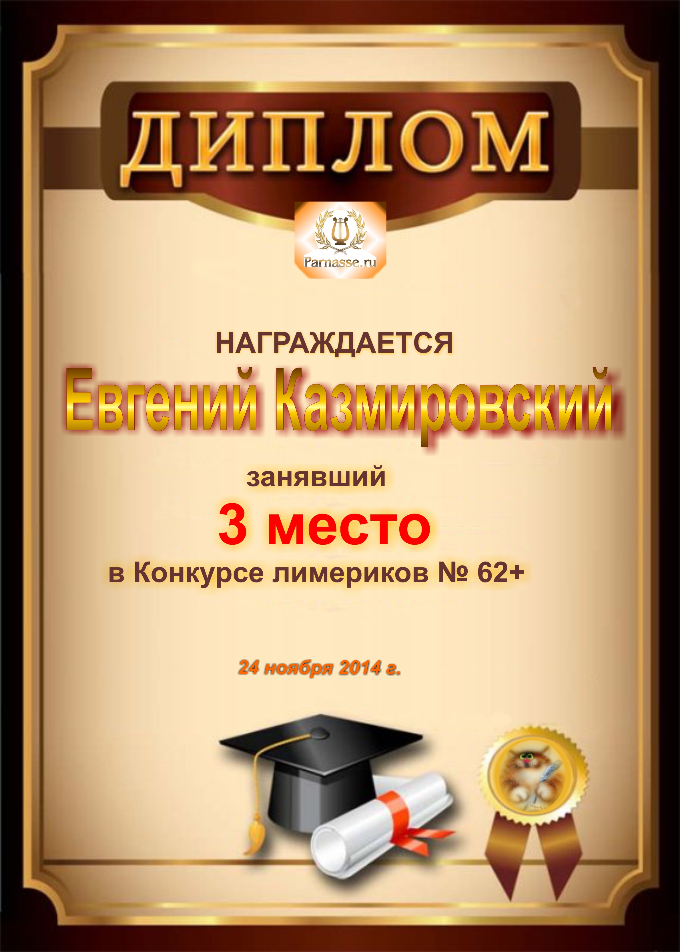 Похвальная грамота за 5 место и активное участие в конкурсе лимериков № 62+ (24.11.2014 г.)