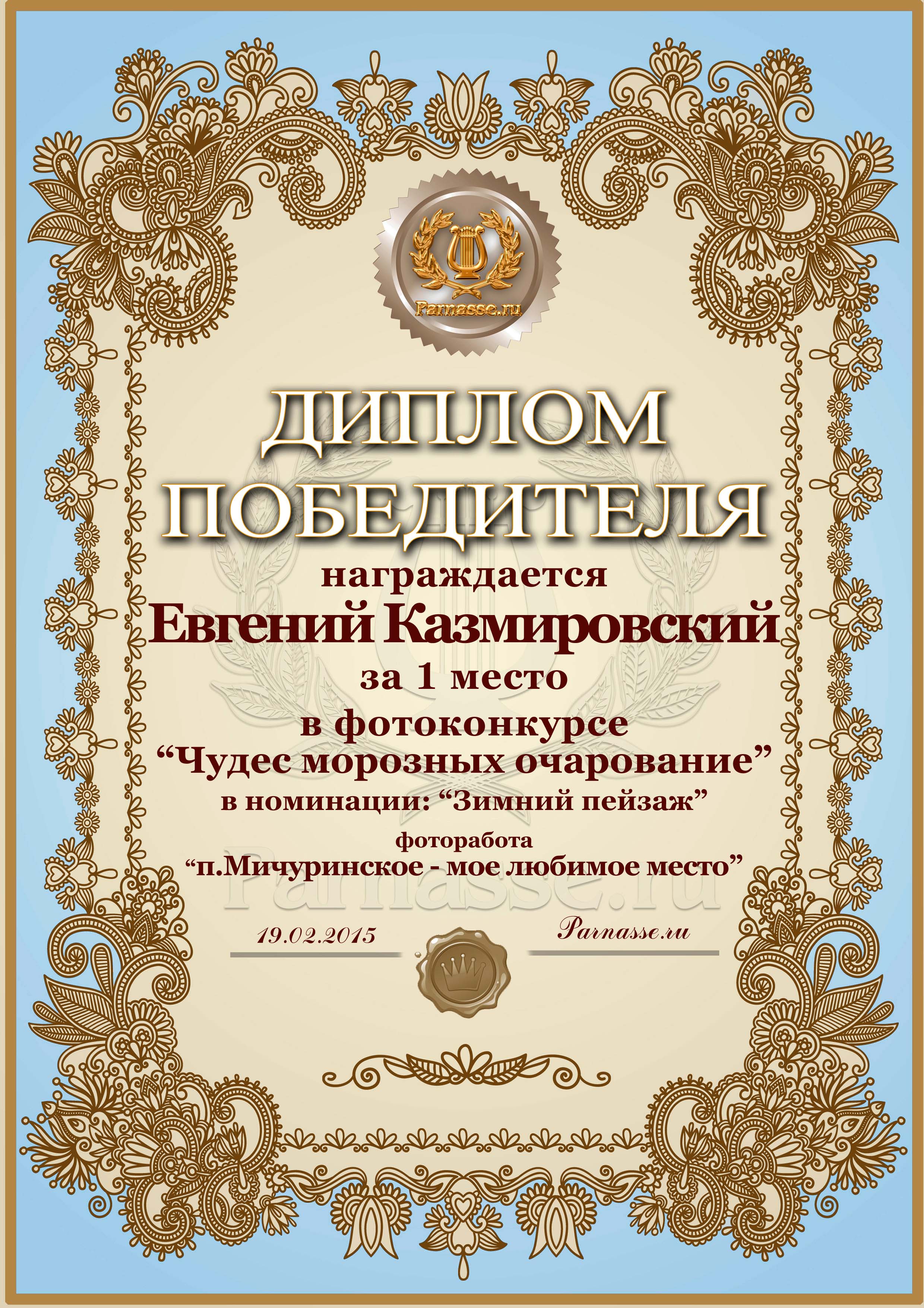 Диплом за 1 место в фотоконкурсе "Чудес морозных очарование"