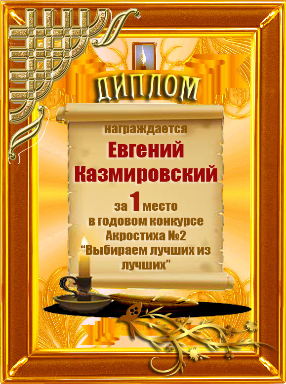 Диплом за 1 место во 2 годовом Альтернативном итоговом конкурсе АКРОСТИХА! ПОЗДРАВЛЯЮ!