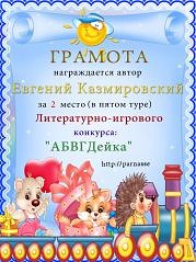 Грамота за 5 место во 2 годовом Альтернативном итоговом конкурсе АКРОСТИХА! ПОЗДРАВЛЯЮ!