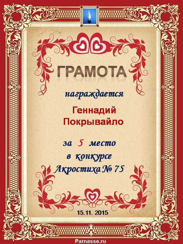 Грамота за 5 место в 31 конкурсе АКРОСТИХА!