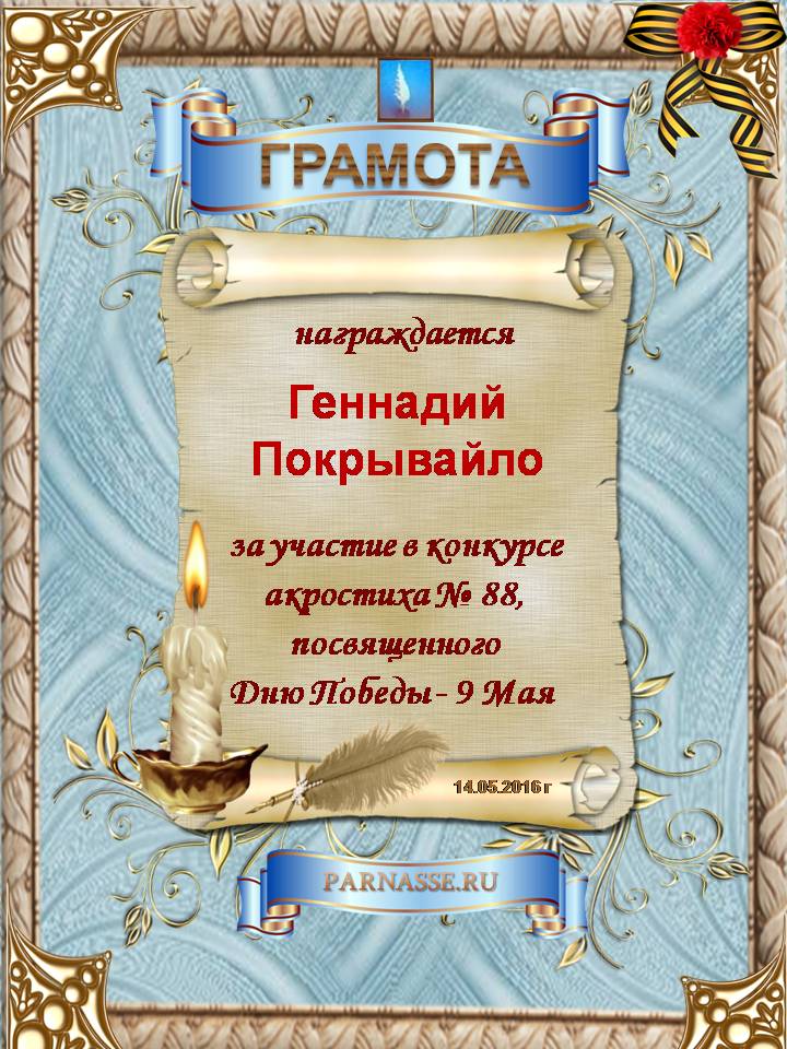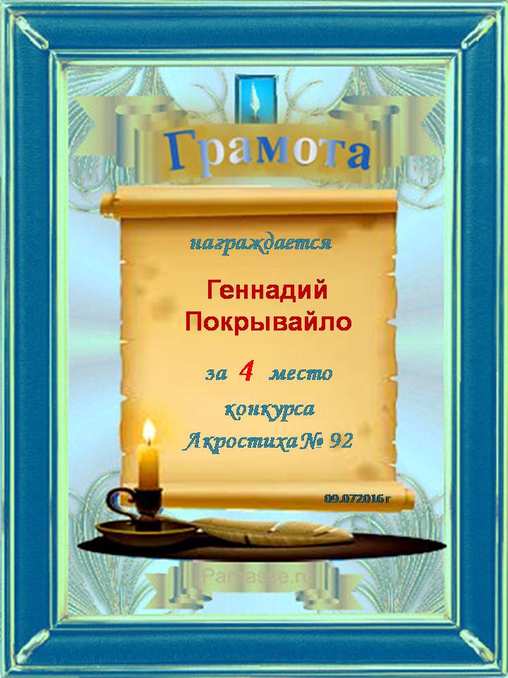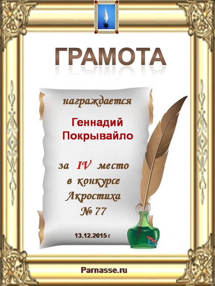 Грамота за 4 место в 15 конкурсе АКРОСТИХА!