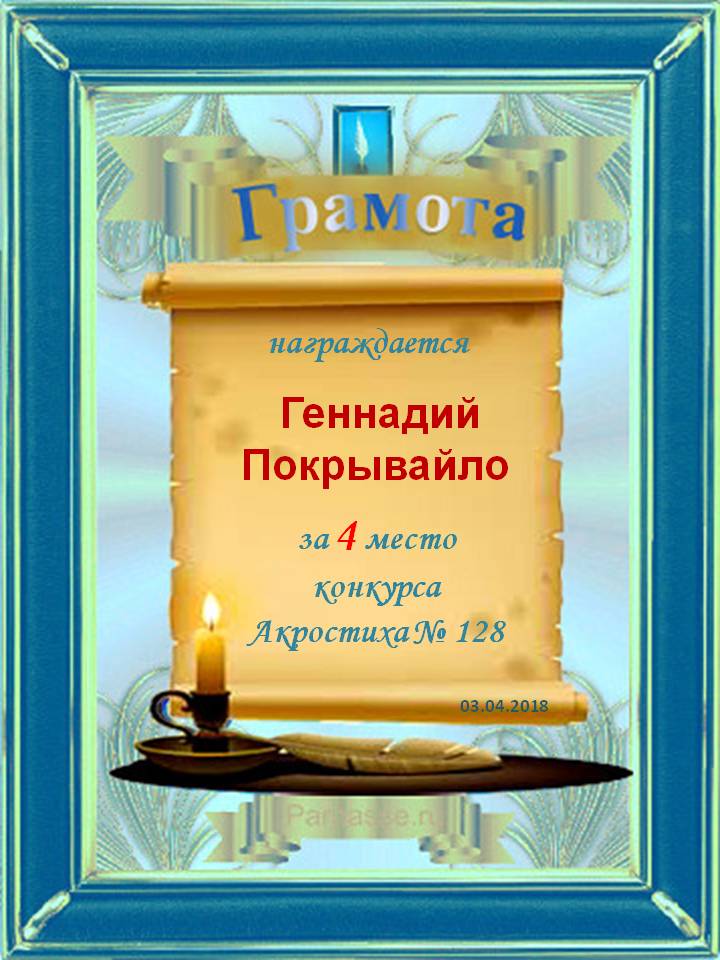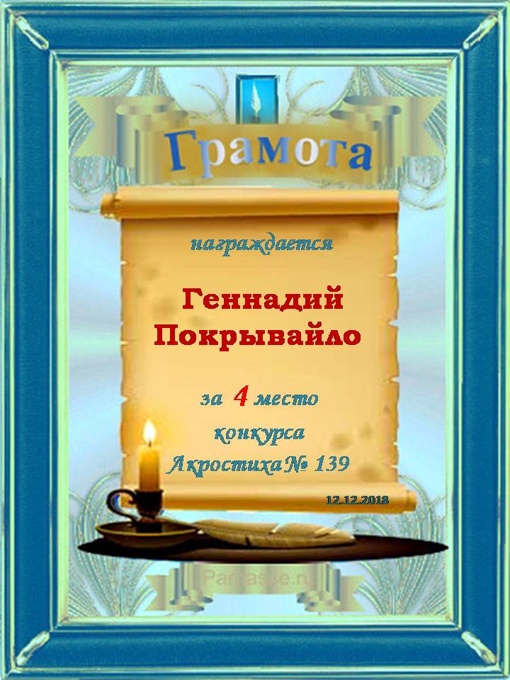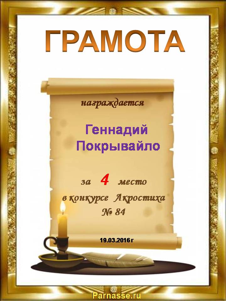 Грамота за 4 место в 35 конкурсе АКРОСТИХА!