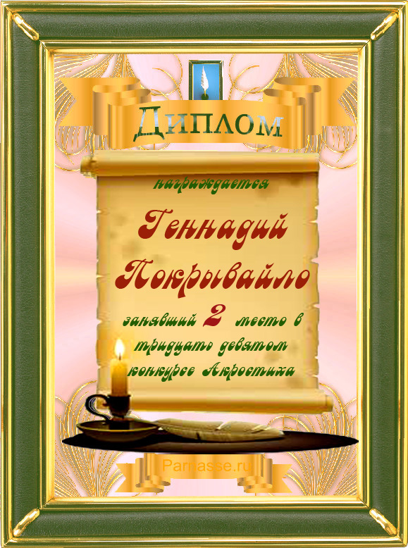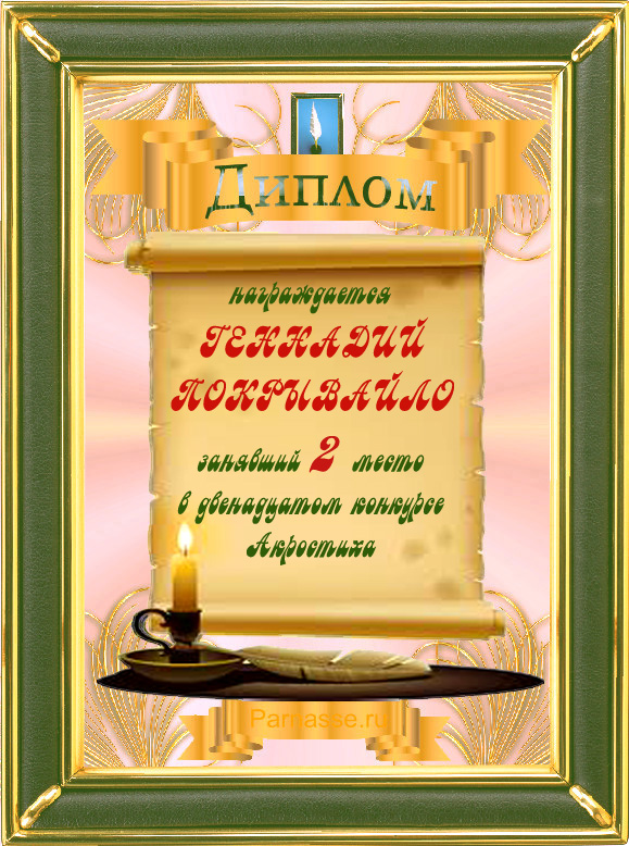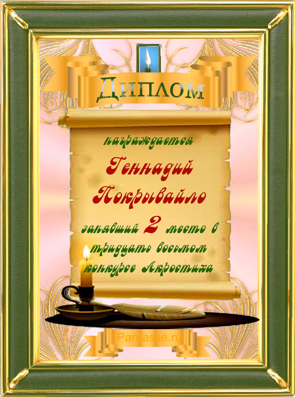 Диплом за 2 место в 38 конкурсе АКРОСТИХА!