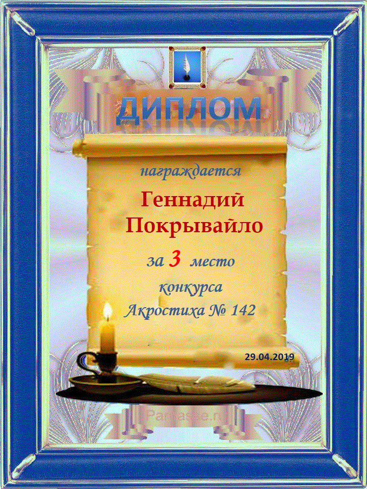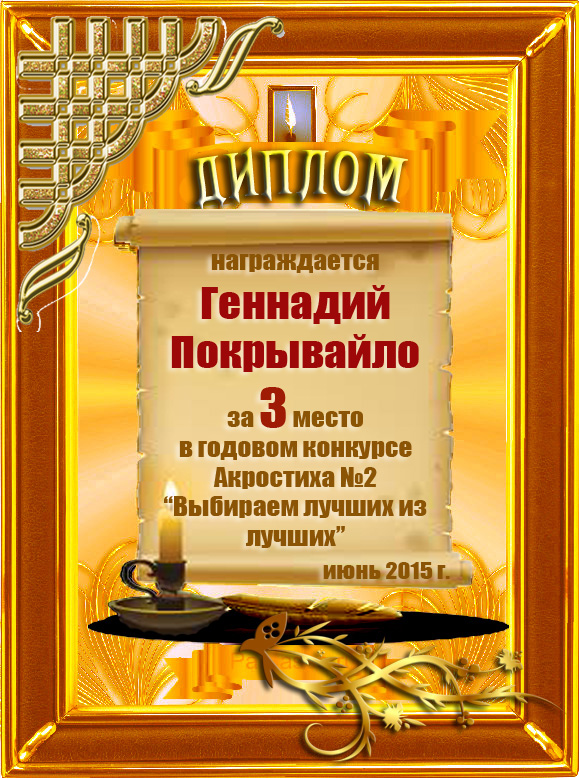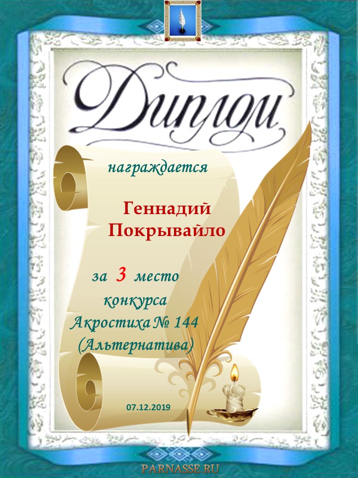 Диплом за 3 место в 54 конкурсе АКРОСТИХА (Альтернатива)!