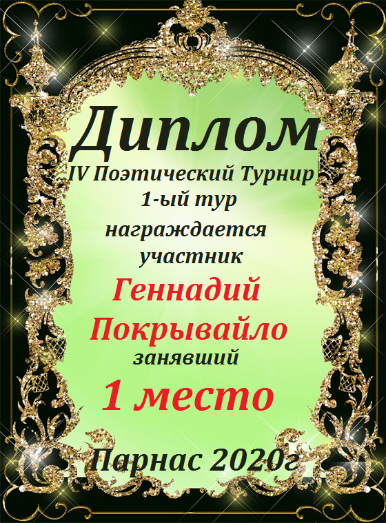 Первое место в 1-м туре Четвёртого Поэтического Турнира «Я посвящаю матери стихи». Поздравляем!