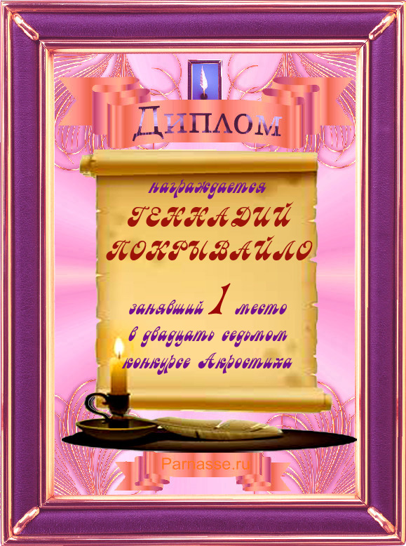 Диплом за 1 место в 27 конкурсе АКРОСТИХА!