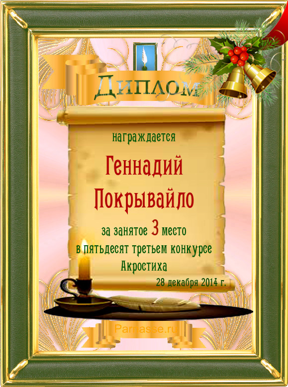 Диплом за 3 место в 53 конкурсе АКРОСТИХА!