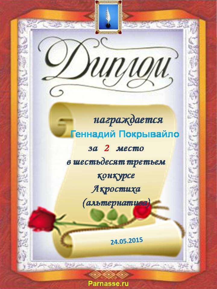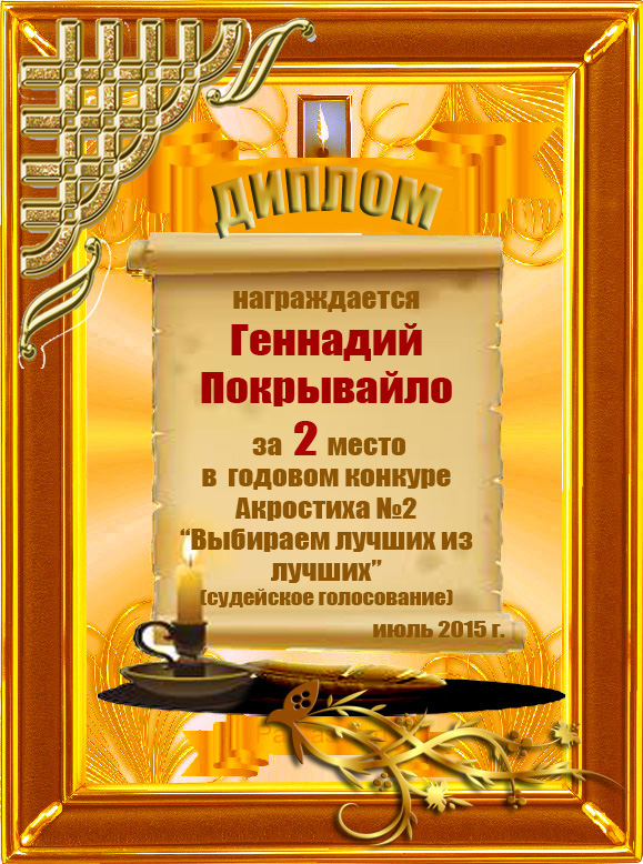 Диплом за 2 место в 15 конкурсе АКРОСТИХА (Альтернатива)!