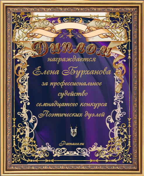 ДИПЛОМ ЗА ПРОФЕССИОНАЛЬНОЕ СУДЕЙСТВО СЕМНАДЦАТОГО КОНКУРСА ПОЭТИЧЕСКИХ ДУЭЛЕЙ