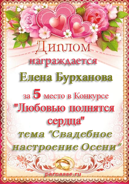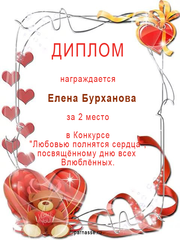 Диплом за 2 место в конкурсе "Дню всех Влюблённых посвящая"