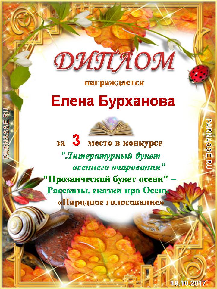 Поздравляем с 3 местом в конкурсе "Литературный букет осеннего очарования" - номинация Проза, народное голосование!