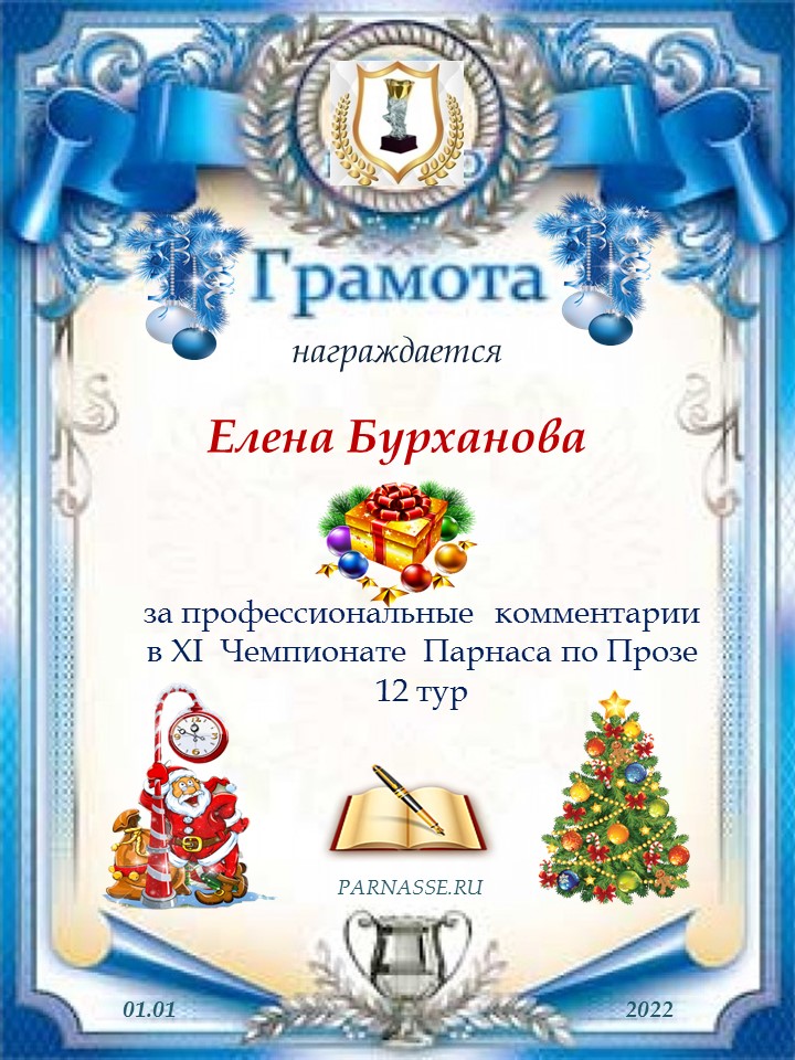 Большое спасибо за профессиональные и объективные комментарии в 10 туре X Чемпионата Парнаса по Прозе!