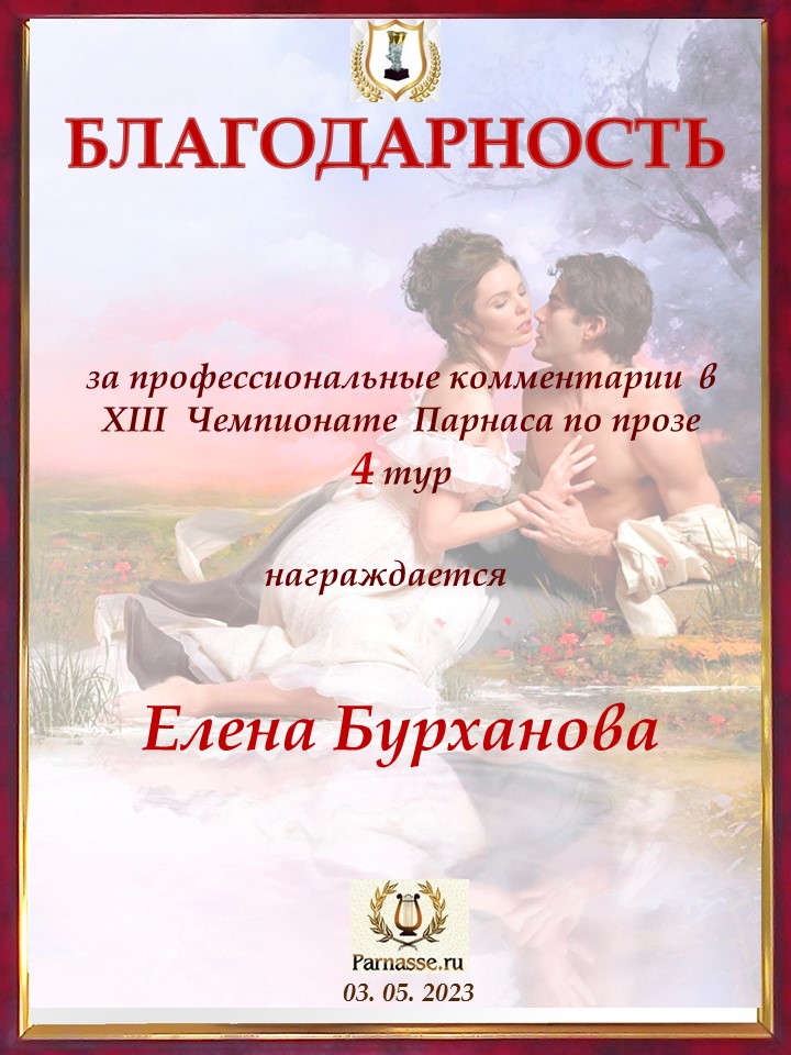 Спасибо, Леночка, за профессиональные комментарии в 7 туре XI Чемпионата Парнаса по Прозе!