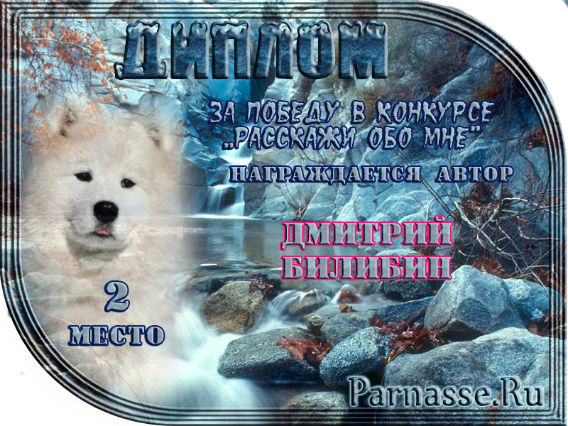 ДИПЛОМ ЗА ВТОРОЕ МЕСТО В КОНКУРСЕ "РАССКАЖИ ОБО МНЕ"
