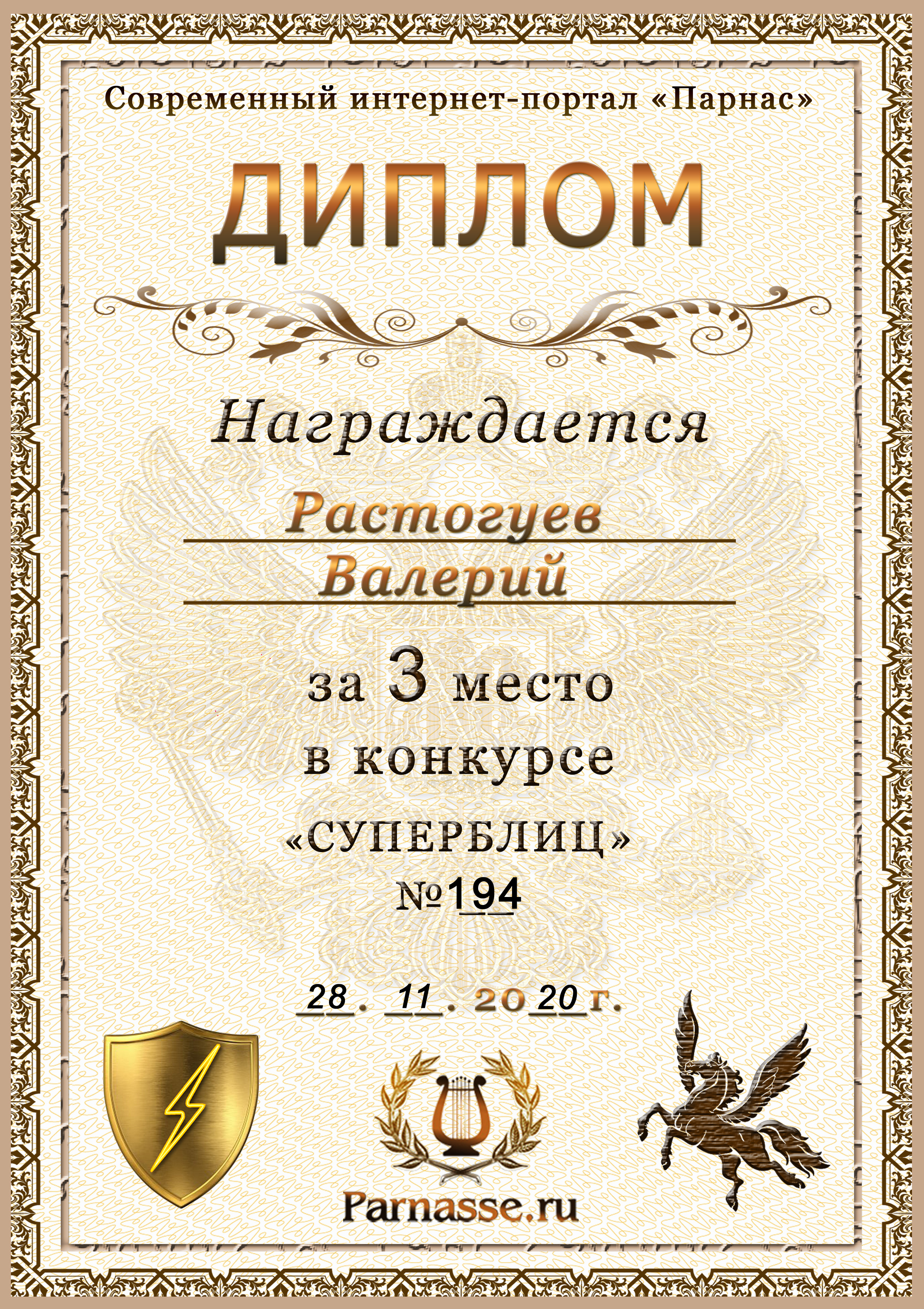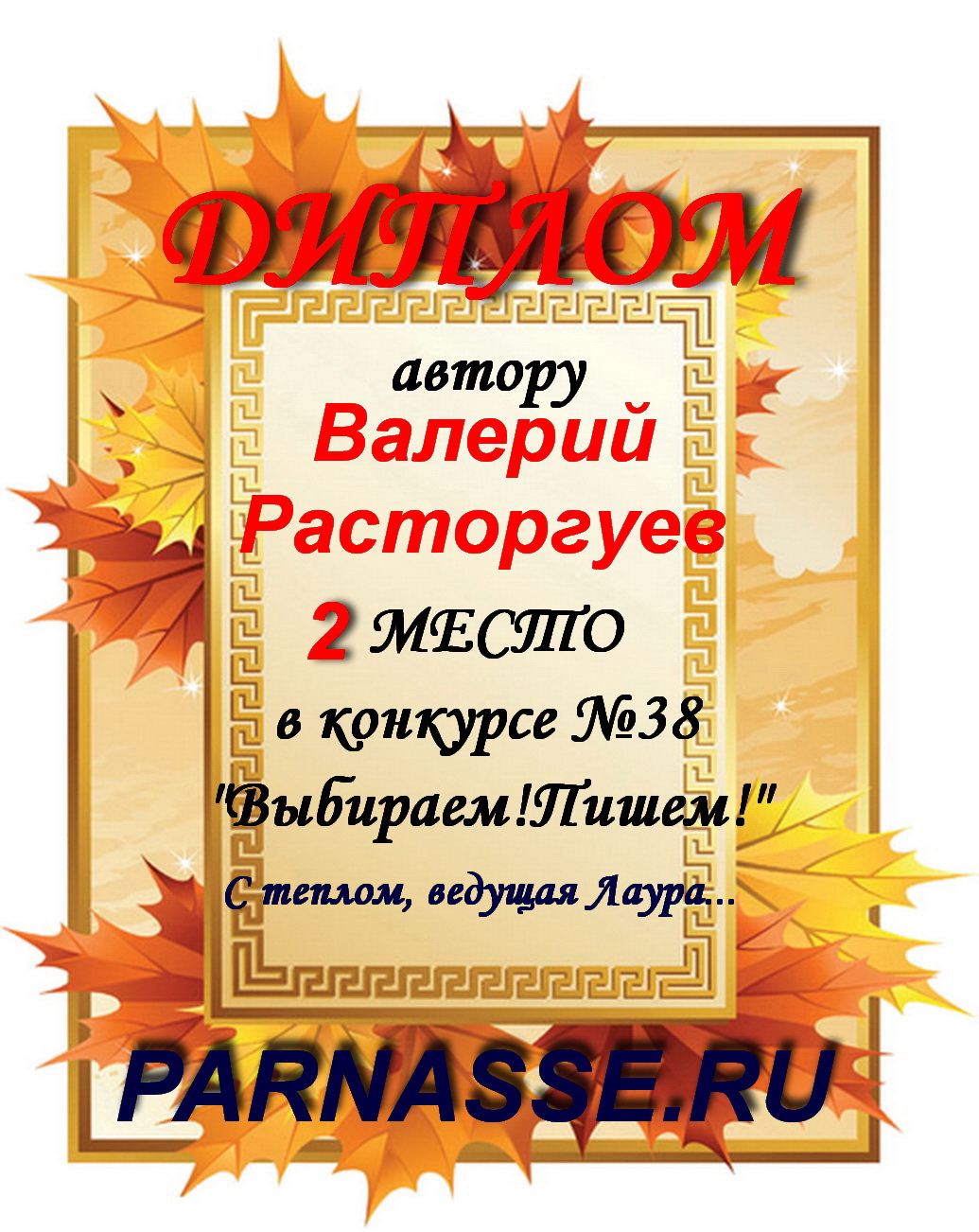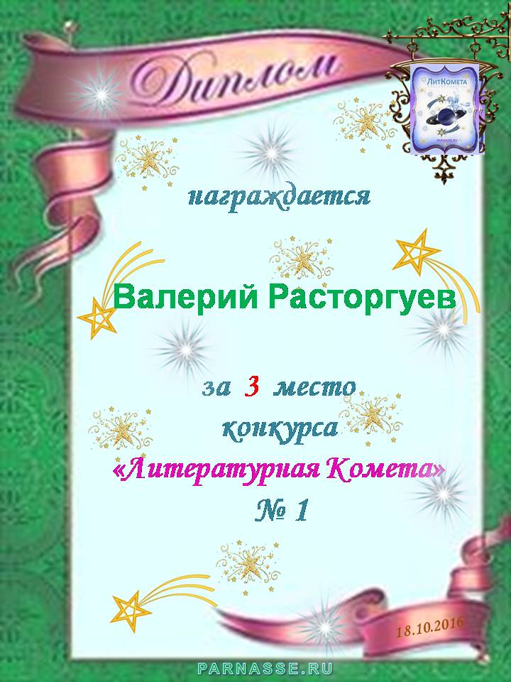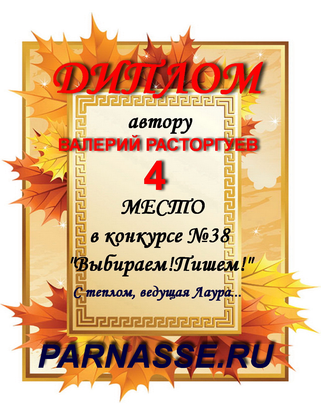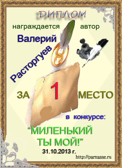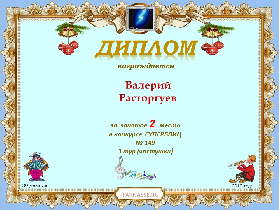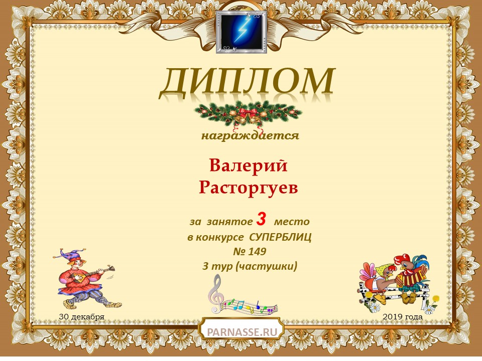 Диплом за 1 место в праздничном конкурсе "Поздравим Парнас с трёхлетием вместе!"