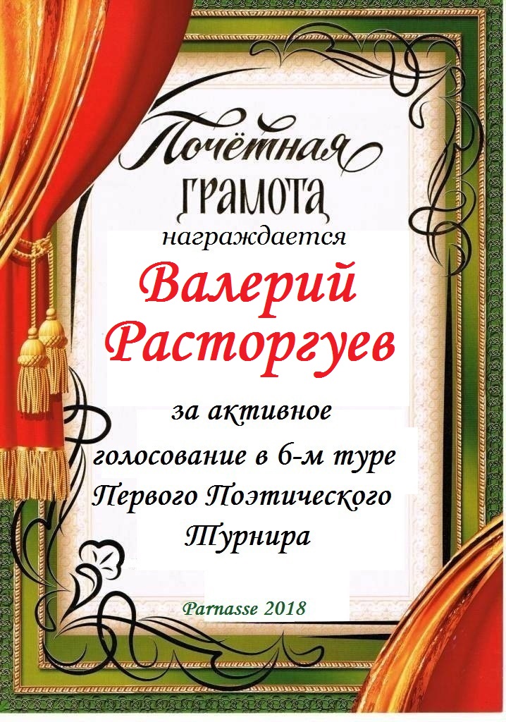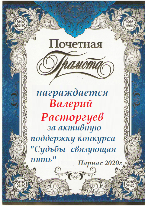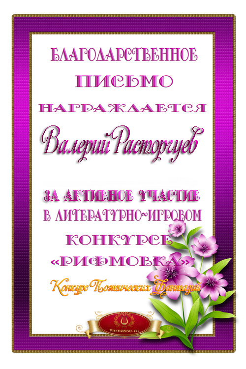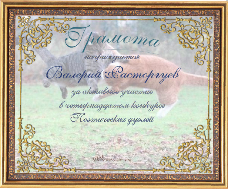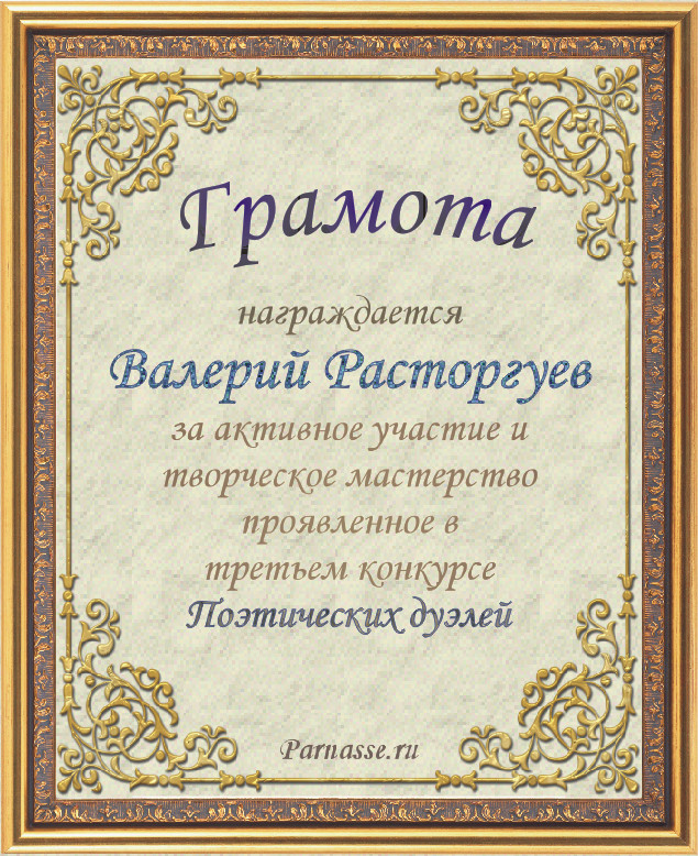 Почётная грамота за активное участие в третьем конкурсе Поэтических дуэлей