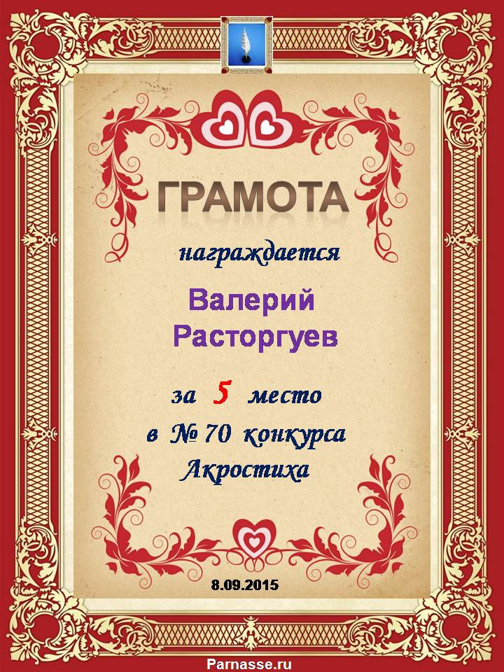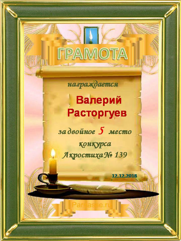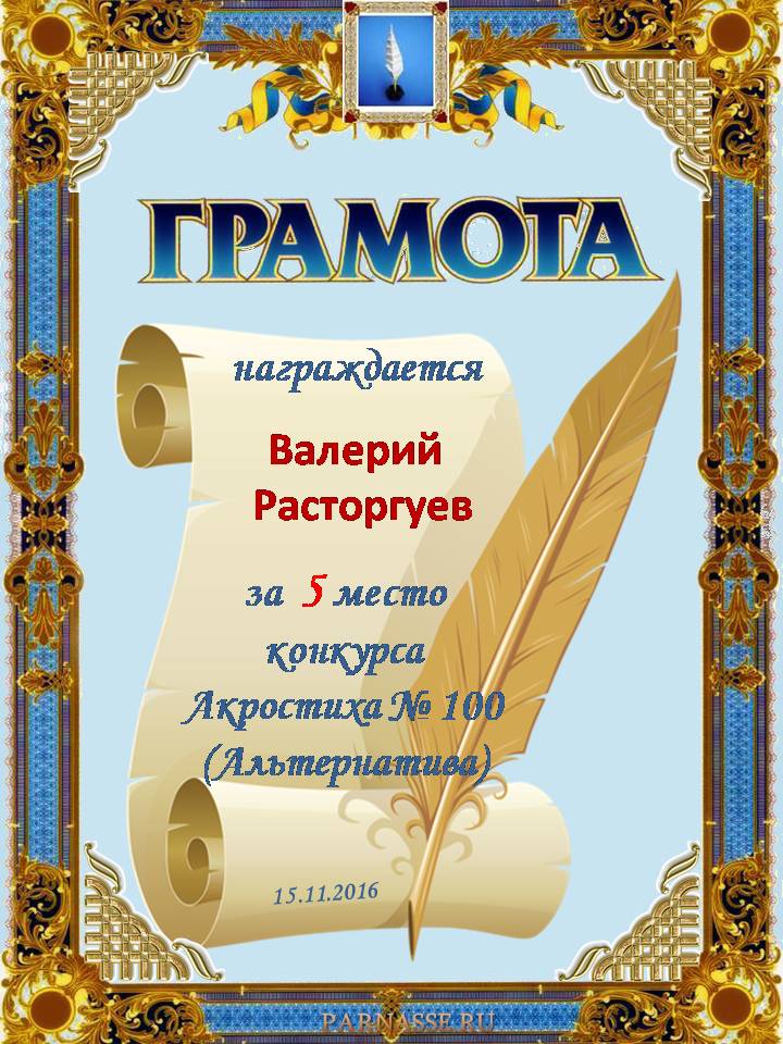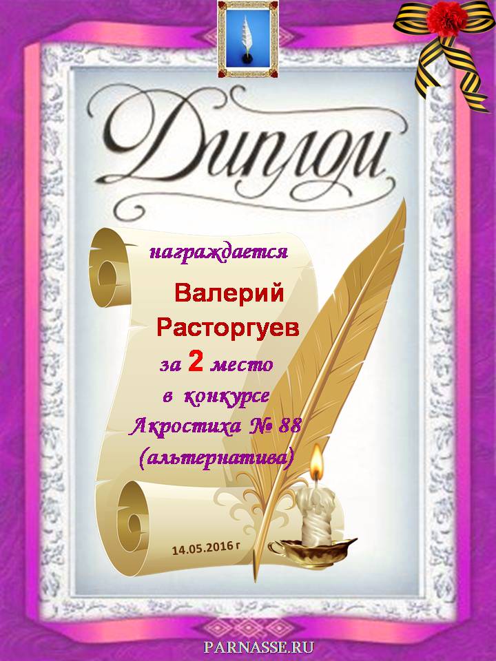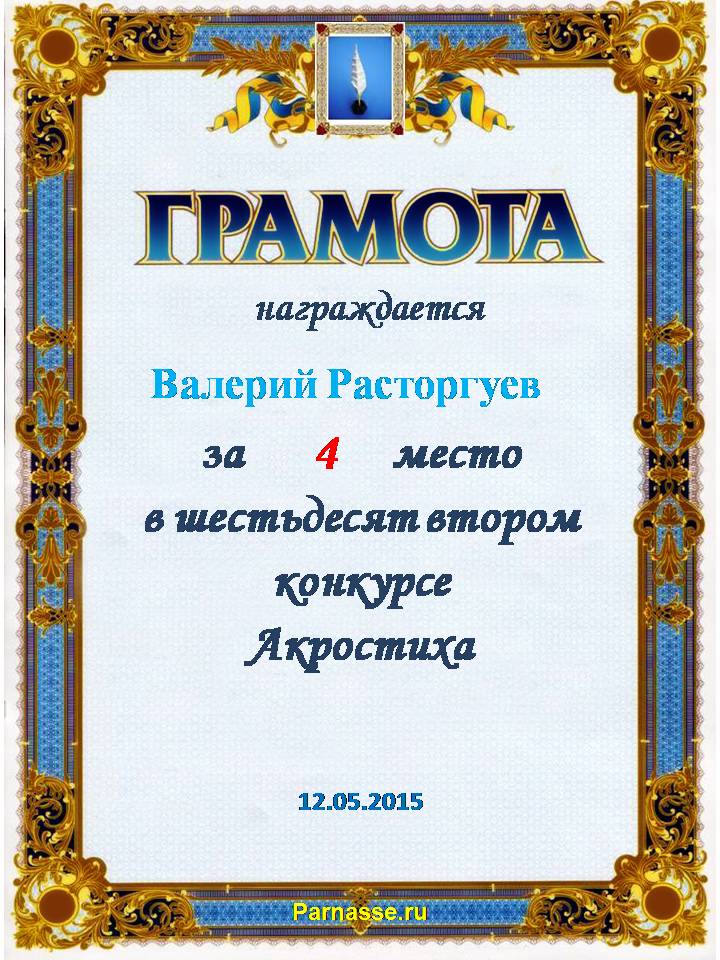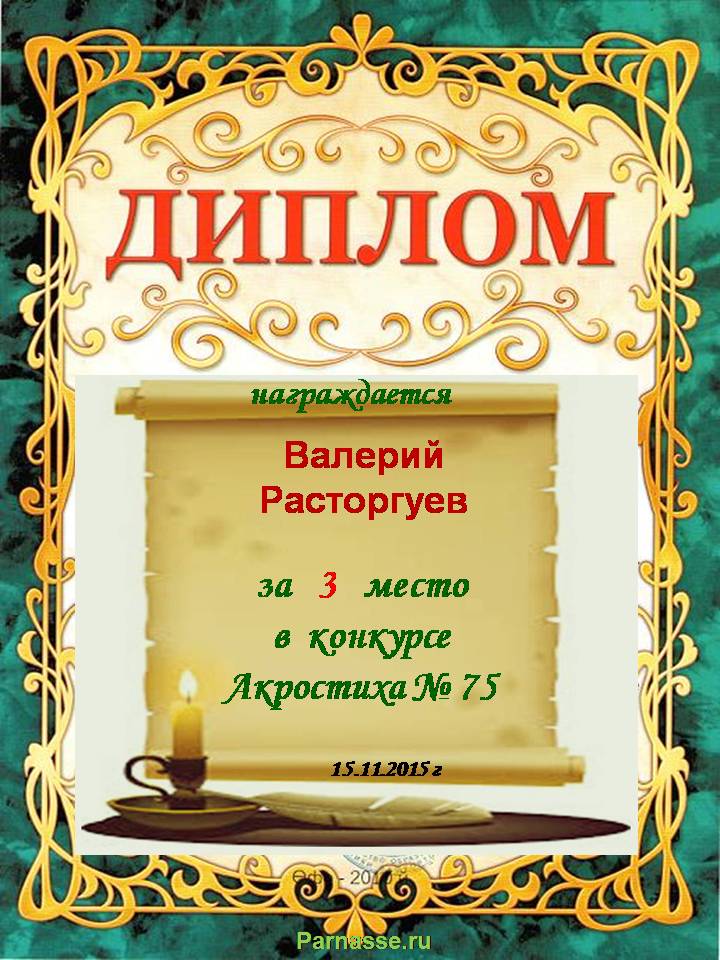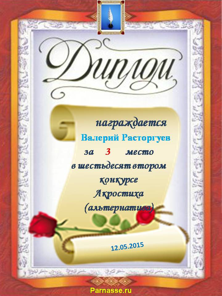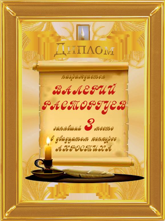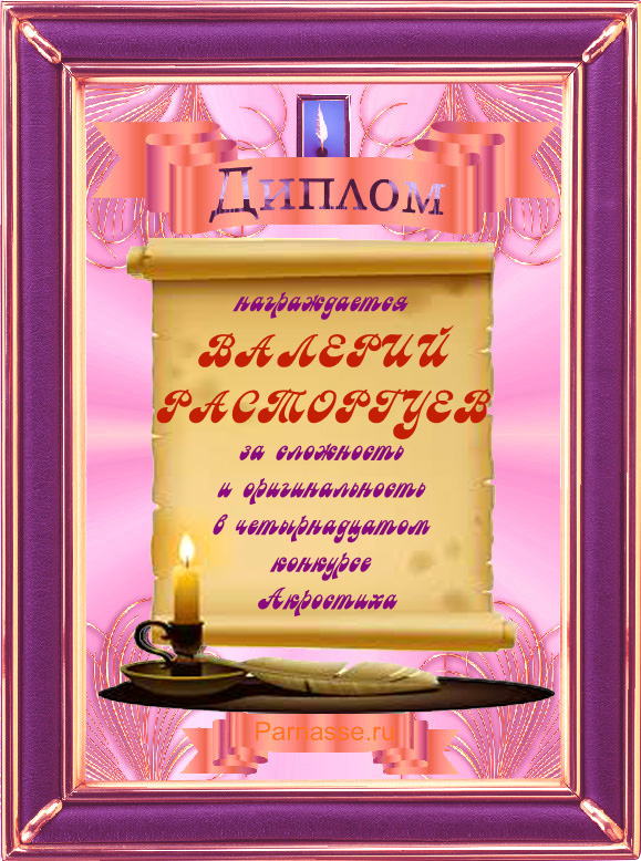 Диплом за победу в номинации "За сложность и оригинальность" в 11 конкурсе АКРОСТИХА! ПОЗДРАВЛЯЮ!
